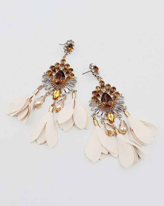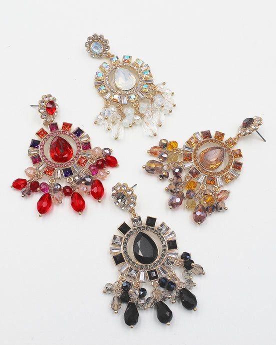 Crystal Bling Chandelier Earrings with Satin Fringe