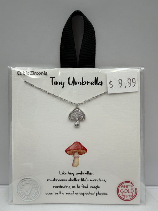 "Tiny Umbrella" Mushroom White Gold Dipped Necklace