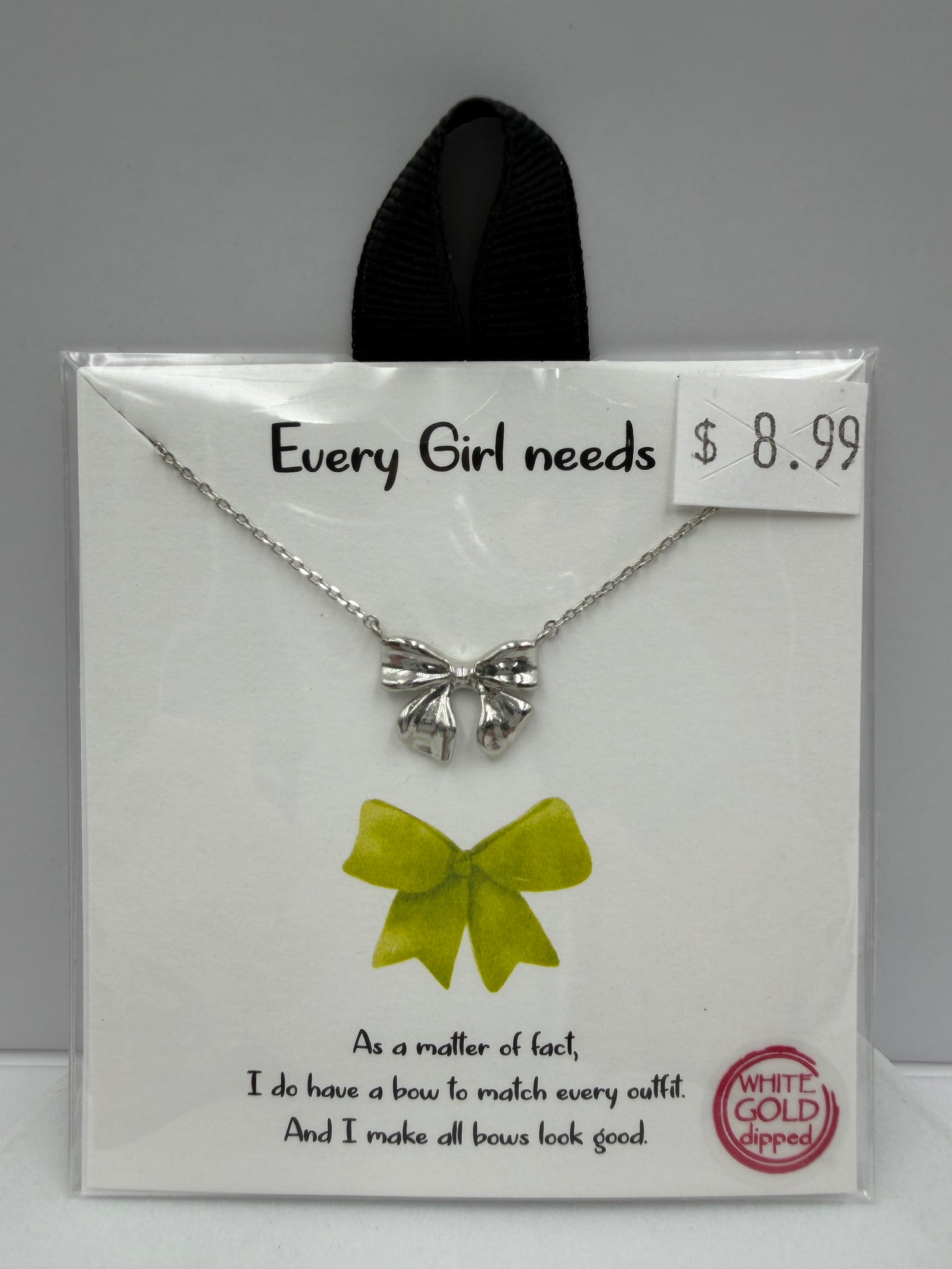 "Every Girl Needs" Bow White Gold Dipped Necklace
